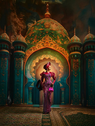 Designed by Hudayya, this final look blended rich colours with contemporary design. The cape, reminiscent of the traditional Alkeba, paired with the beaded bodice, created a modern silhouette rooted in heritage.