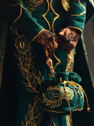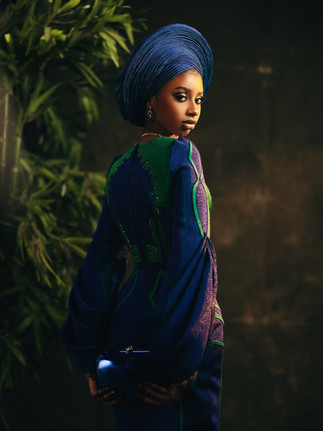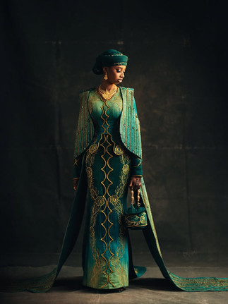 Designed by Couture by Tabik, this green and royal blue dress for Aisha’s Kamu ceremony drew inspiration from the timeless beauty of Arabic architecture. It was more than a dress—it was a heartfelt nod to tradition and a portrait of cultural elegance.